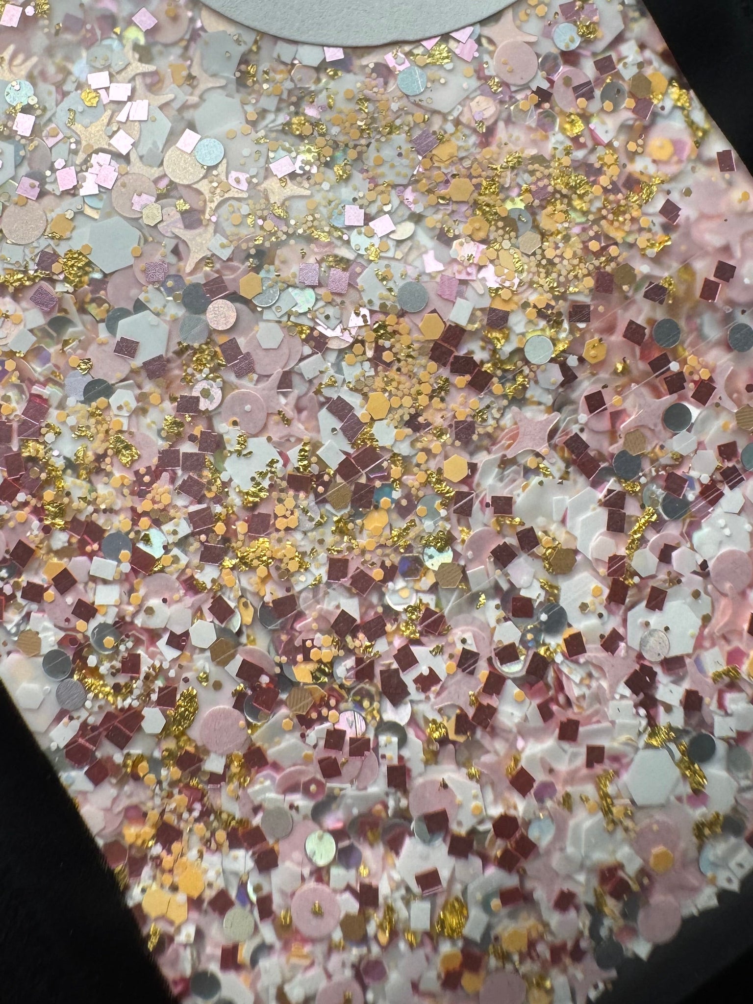 Un glitter delicado, brillante y completamente apto para encapsulados en gel. Esta mezcla está creada y seleccionada por mí, usando elementos pequeños y finos que se integran perfectamente en gel sin crear volumen innecesario.